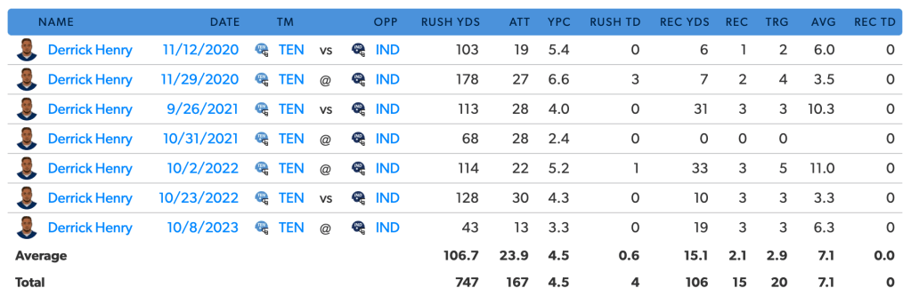 The blueprint for beating the Tennessee Titans is to stop Derrick Henry. The issue is that every team knows that and Henry still manages to get 30+ touches and 100+ yards. Against the Colts, Henry’s performance is very productive when healthy and it translates into wins for Tennessee.